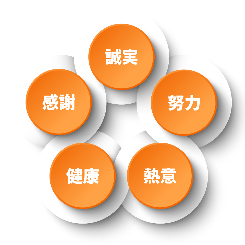 - 一、誠実 1つ1つの業務を誠実に取り組み信頼と実績を築きます