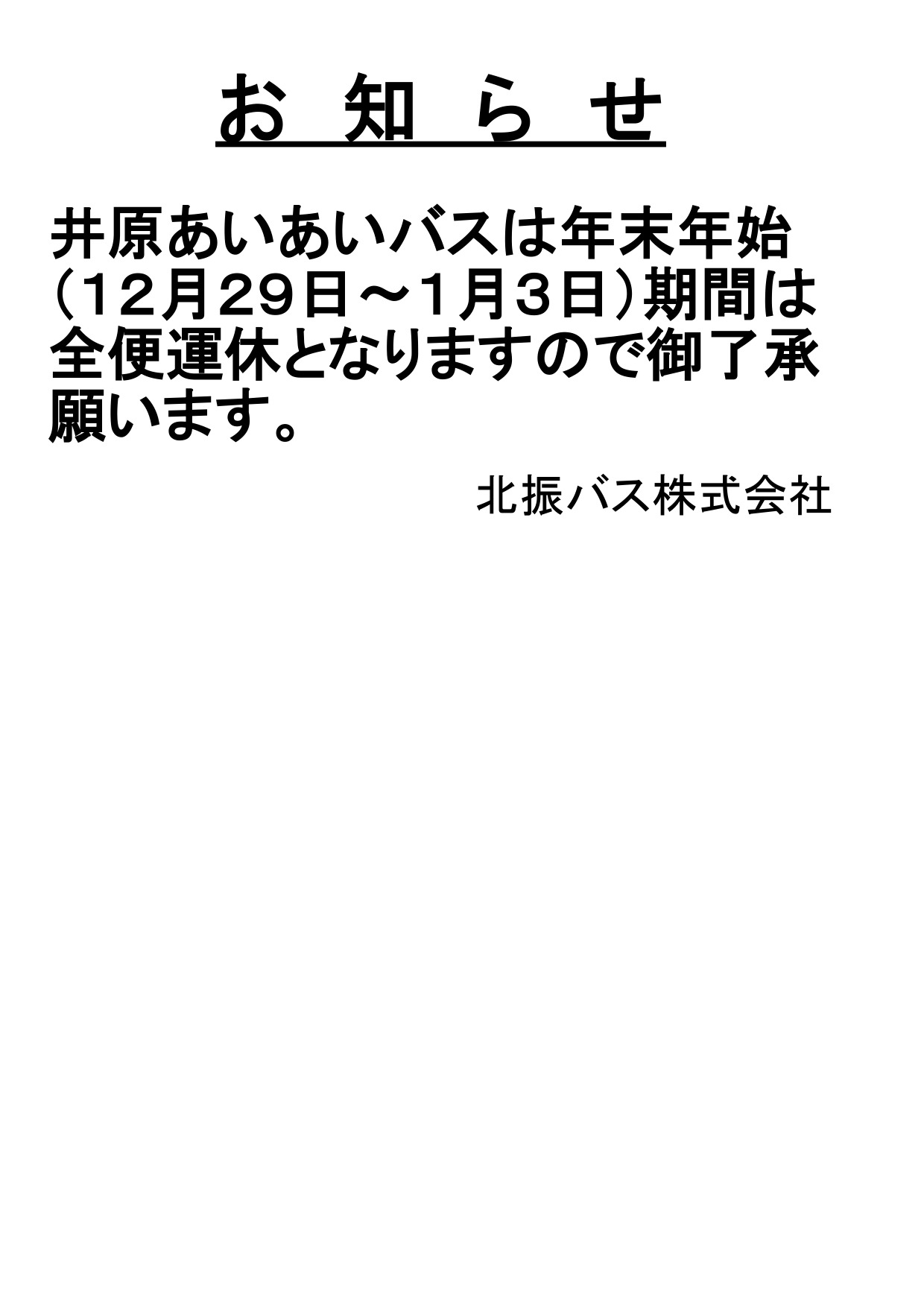 あいあいバスについては同期間運休となりますのでご了承願います。