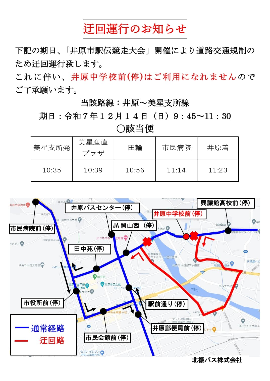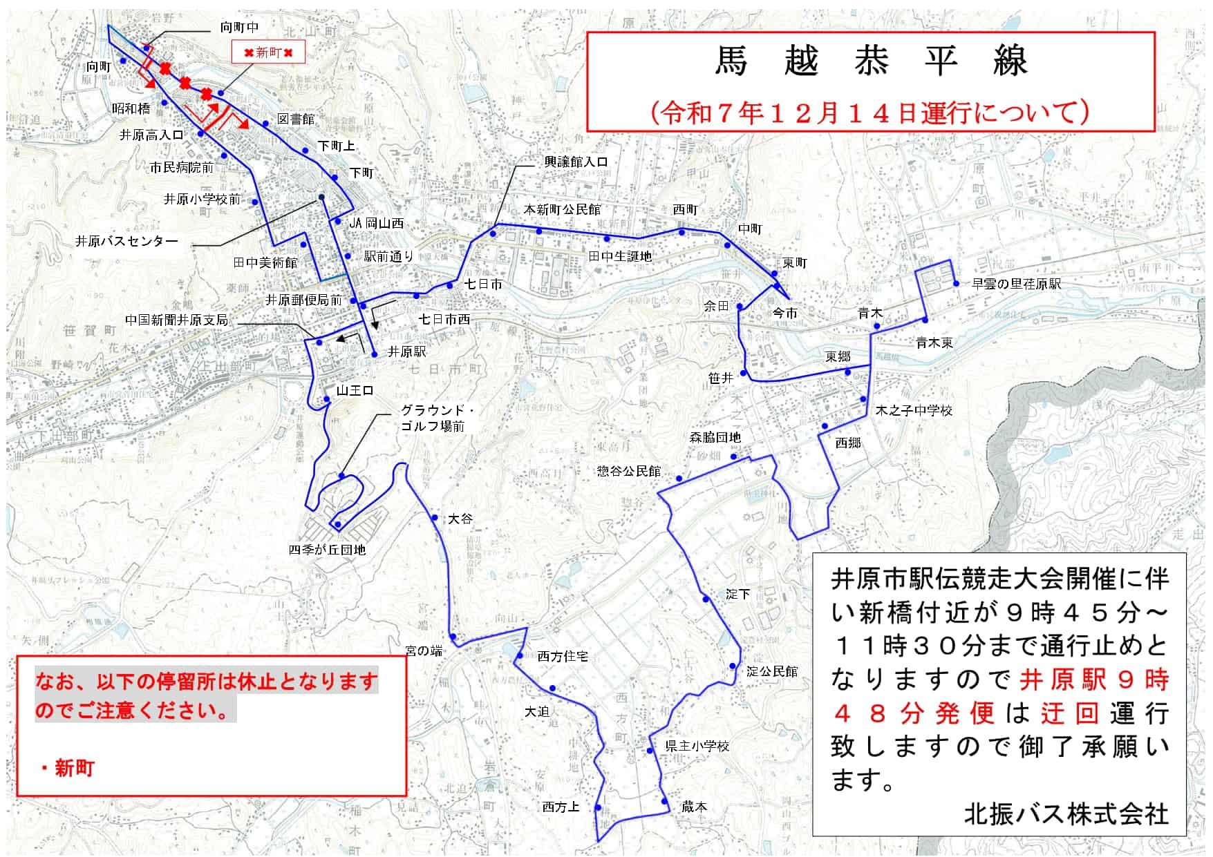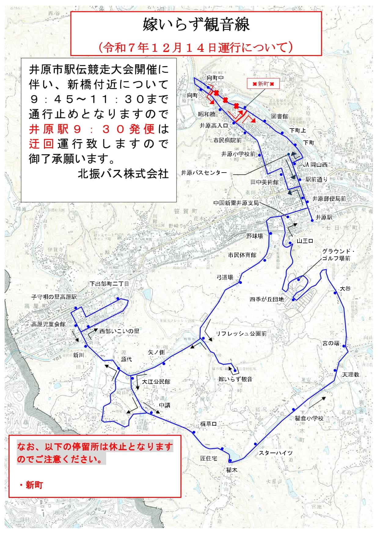 令和7年12月14日(日)に開催される「井原市駅伝競走大会」のため一部迂回運行いたします。