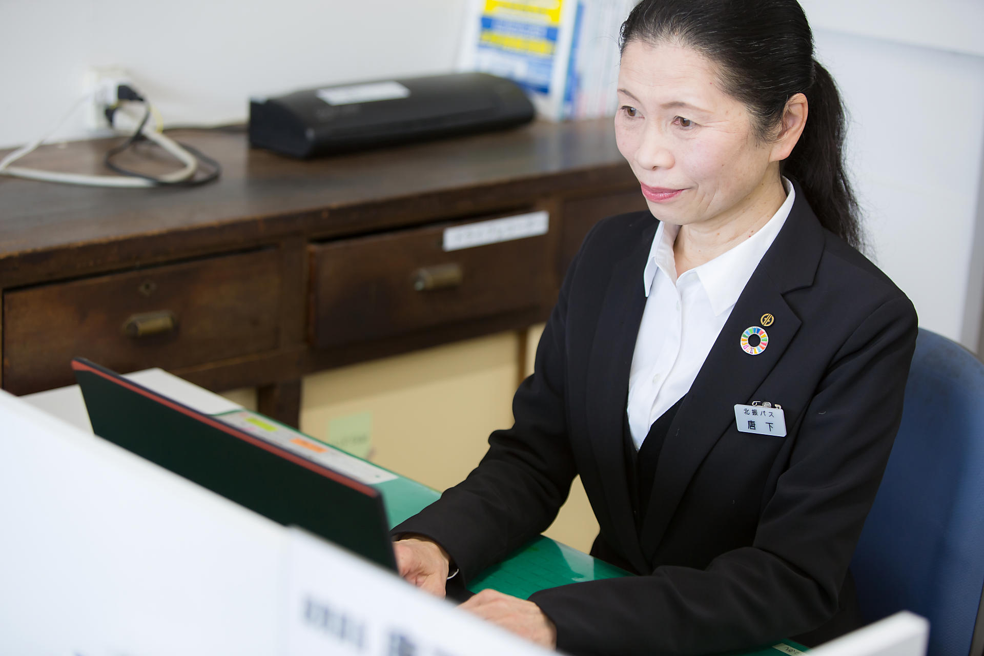 私が心がけていることは、いつもどんなときでもお客様に対して、親切丁寧な接客をすることです。北振バスに乗ってよかったと思ってもらえることが何よりの喜びです。お子様から大人の方まで皆様が笑顔でバスをご利用することができるようにこれからも安全・快適な移動空間をご提供し続けてまいります。